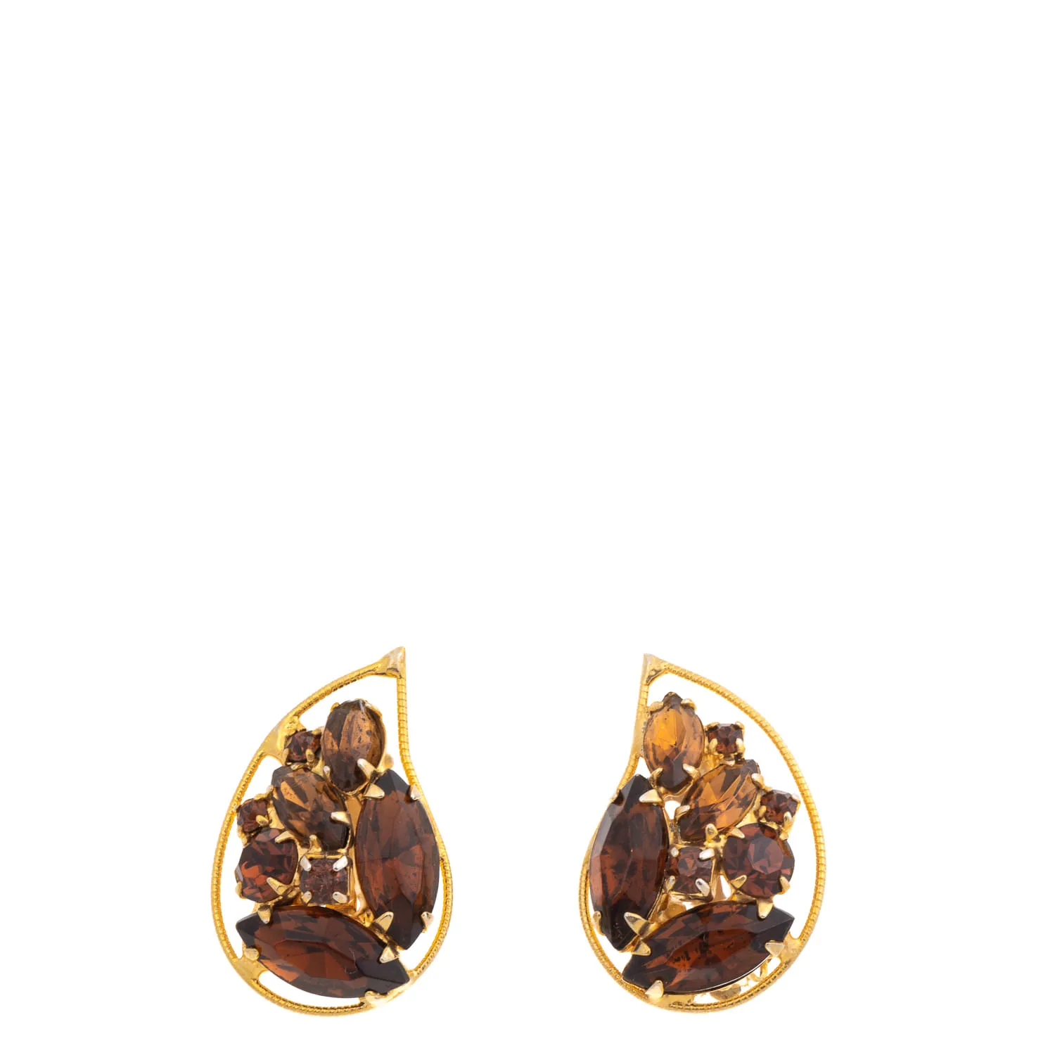 Brinco Vintage Pressão Dourado com Cristais Fumês