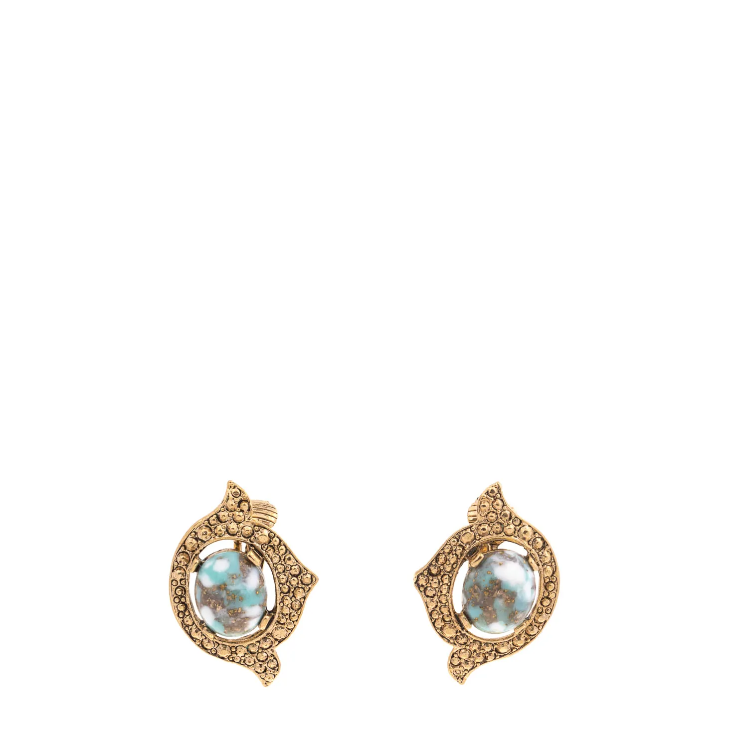 Brinco Vintage Pressão Dourado Pedra Verde e Branca