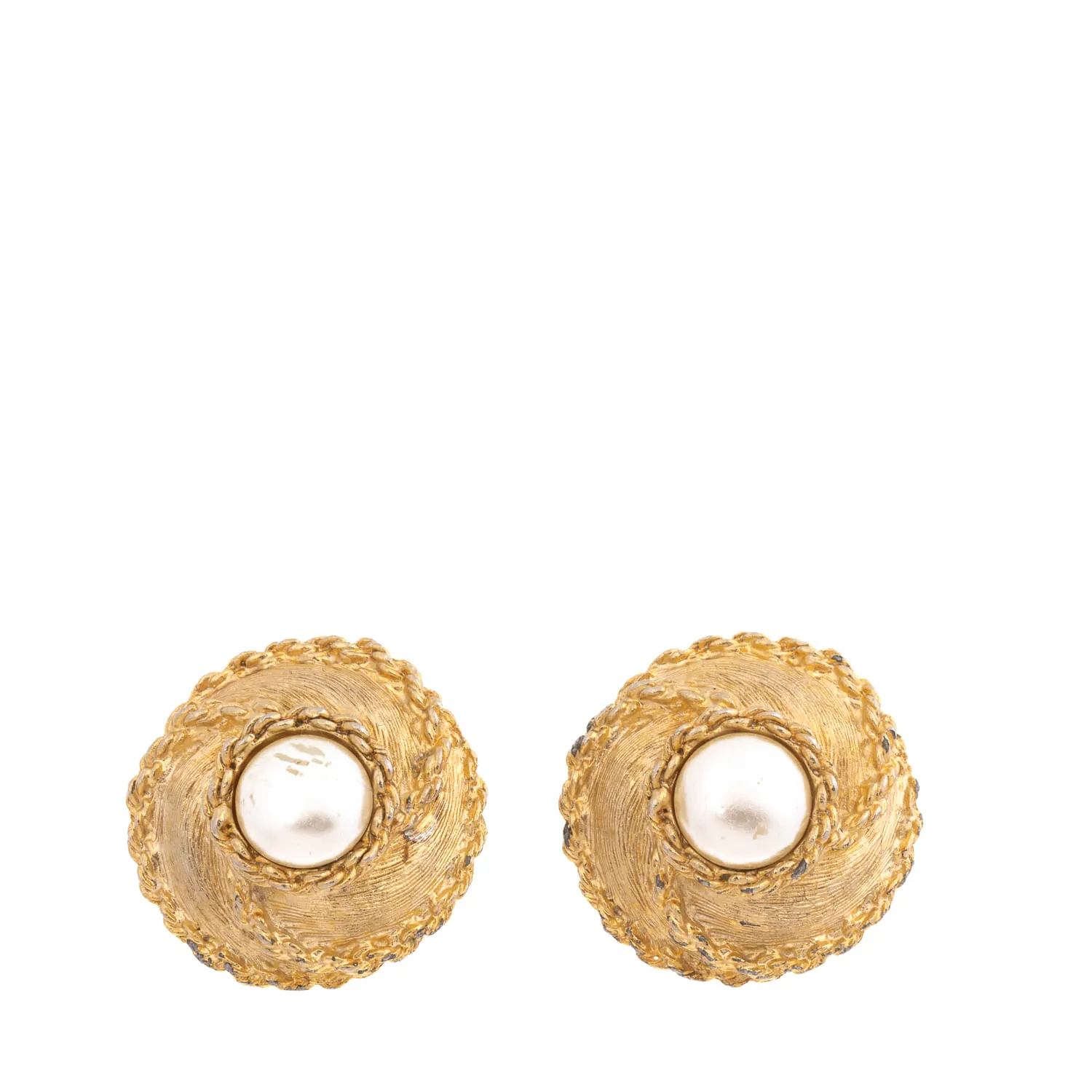 Brinco Vintage Pressão Redondo Dourado com Perolado