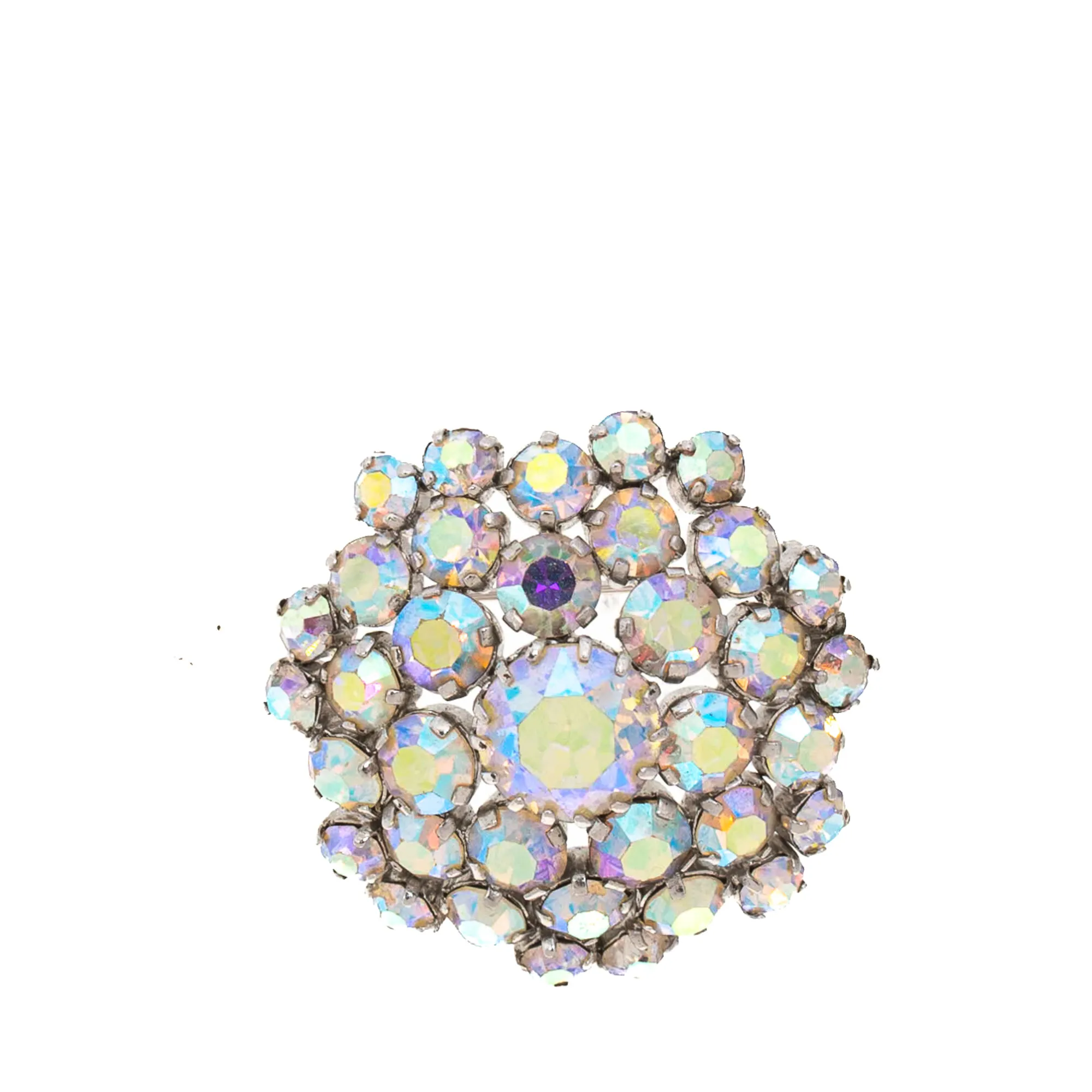 Broche Comprido Prateado Folhas Multicoloridas e Cristais