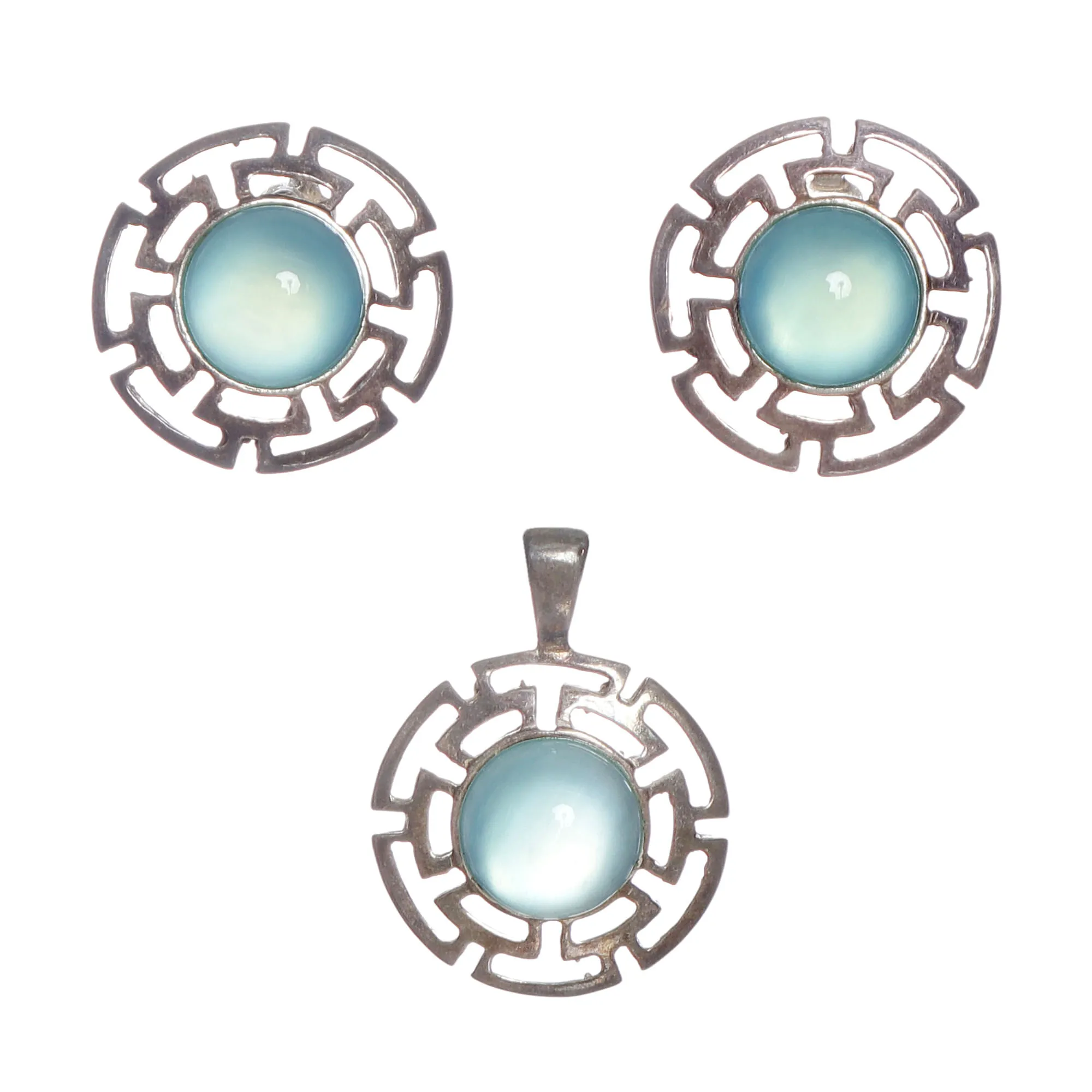 Conjunto Brinco e Pingente Pedra Azul Prata