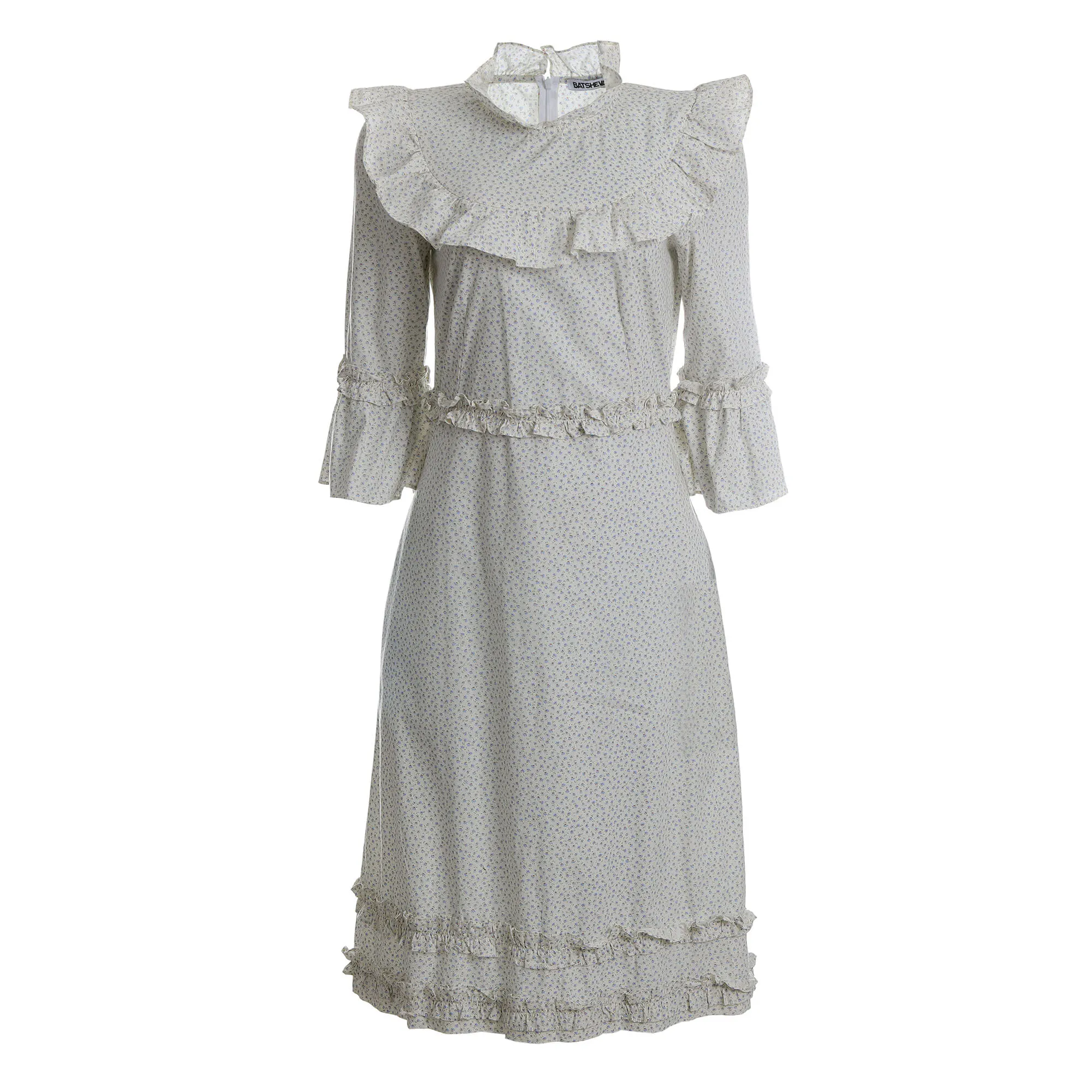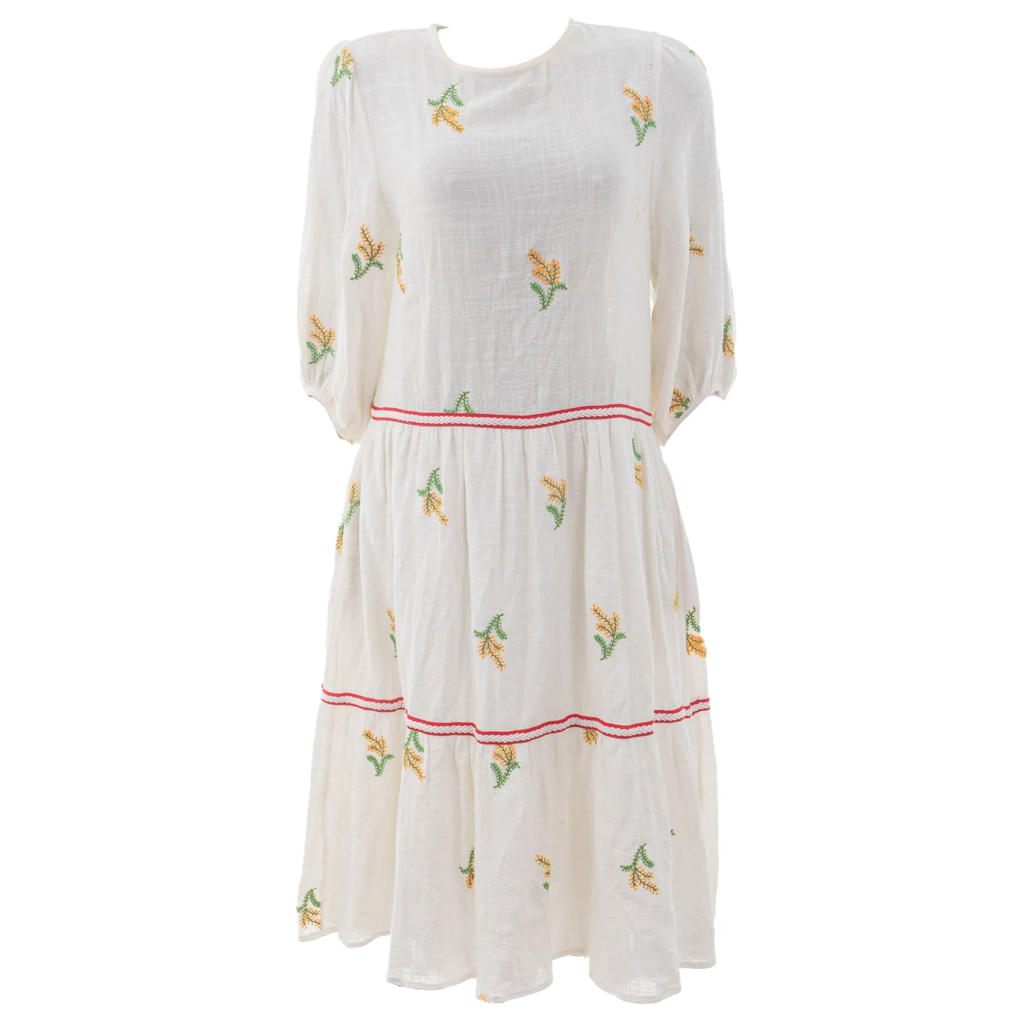 Vestido Algodão Branco Bordado Dourado e Vermelho