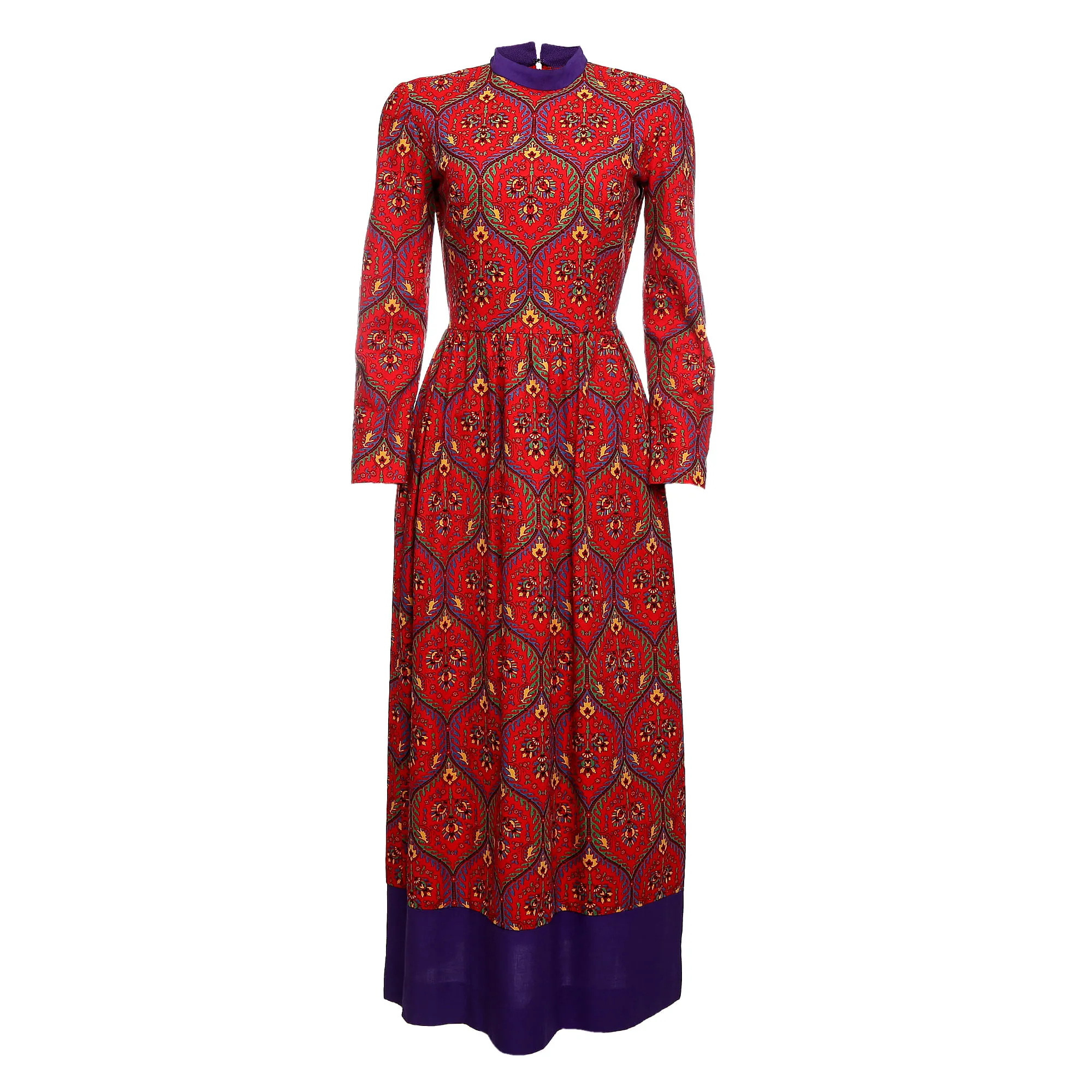 Vestido Vintage Estampado Vermelho e Roxo