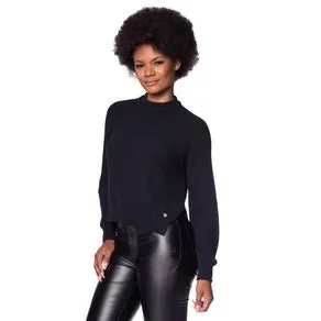 Blusa Feminina Biamar Tricot Fio Pluma Gola Média Preto – – U