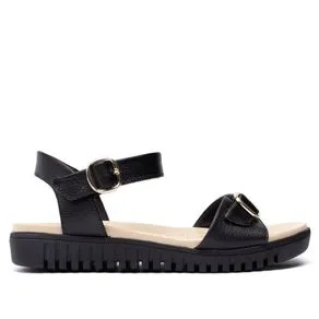 Sandália Feminina Comfortflex Papete em Couro com Fivela Preto