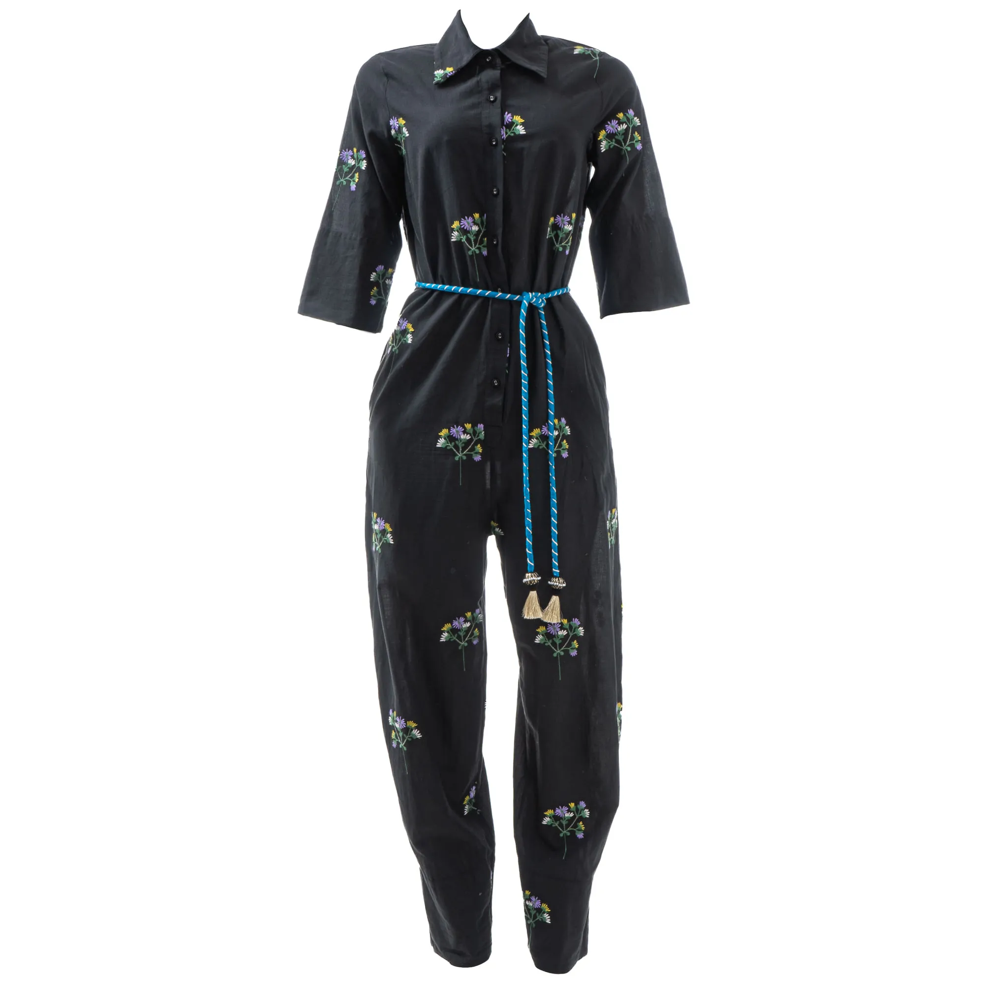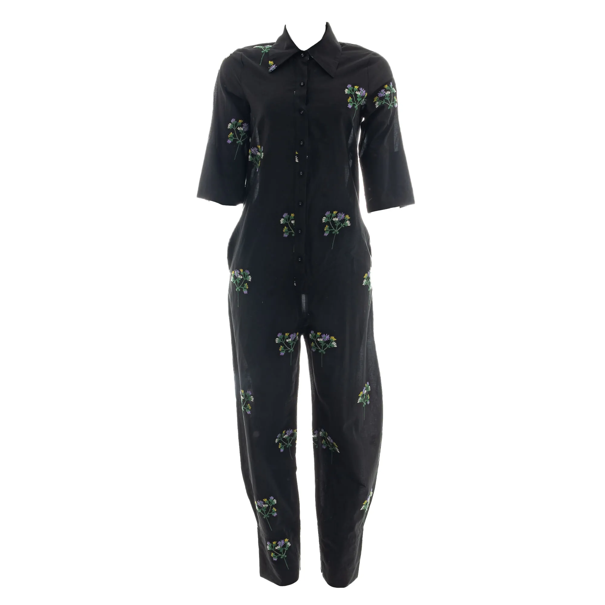 Macacão Cris Barros Bordado Floral Preto