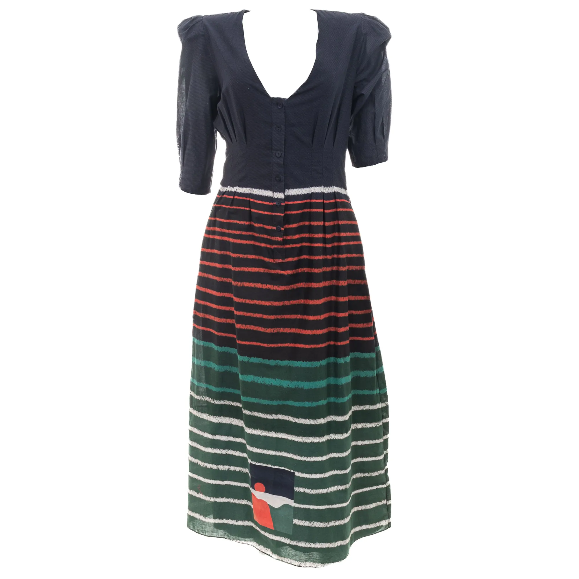 Vestido Cris Barros Botões Listras Marinho Verde e Laranja