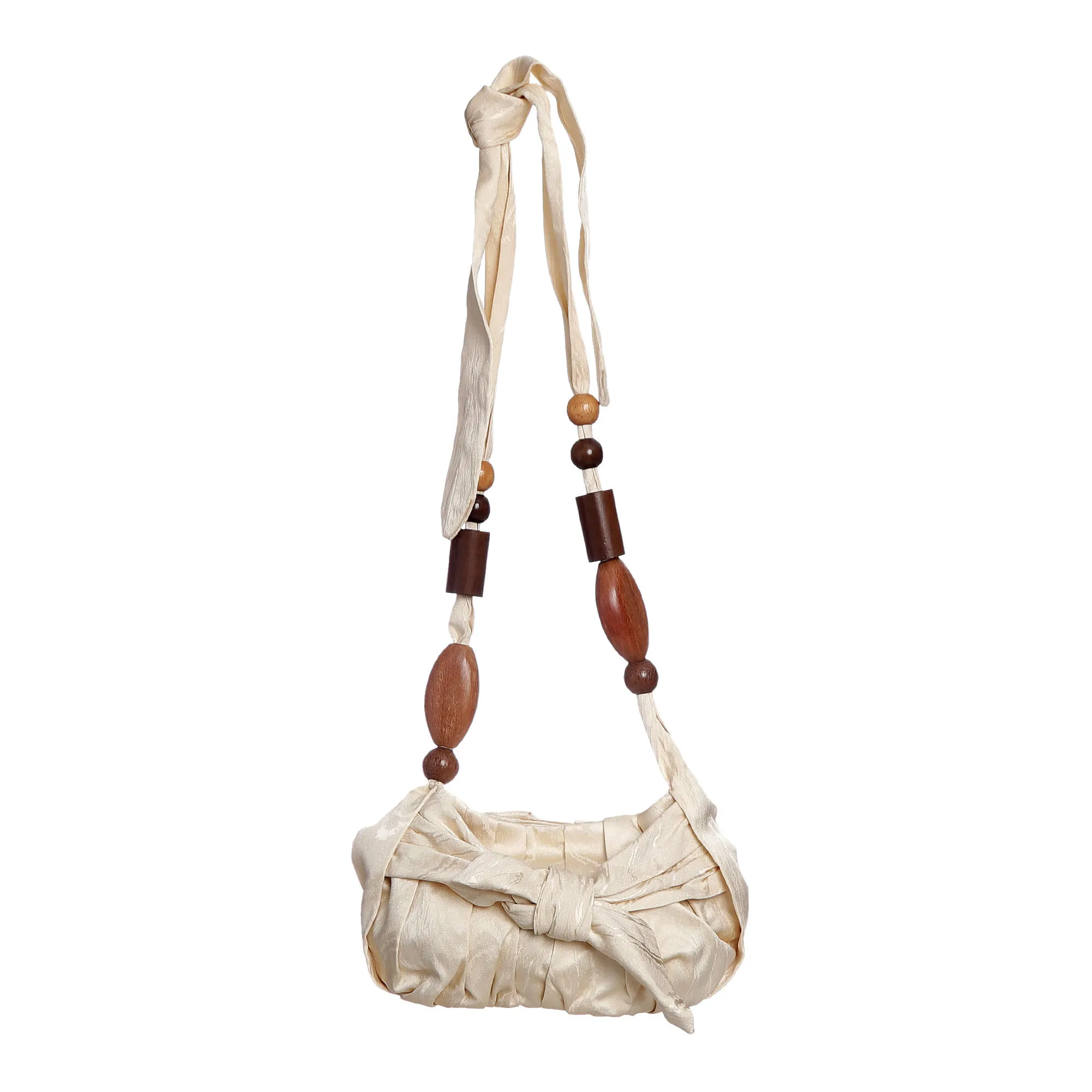 Bolsa Cris Barros Alça Madeira Tecido Creme