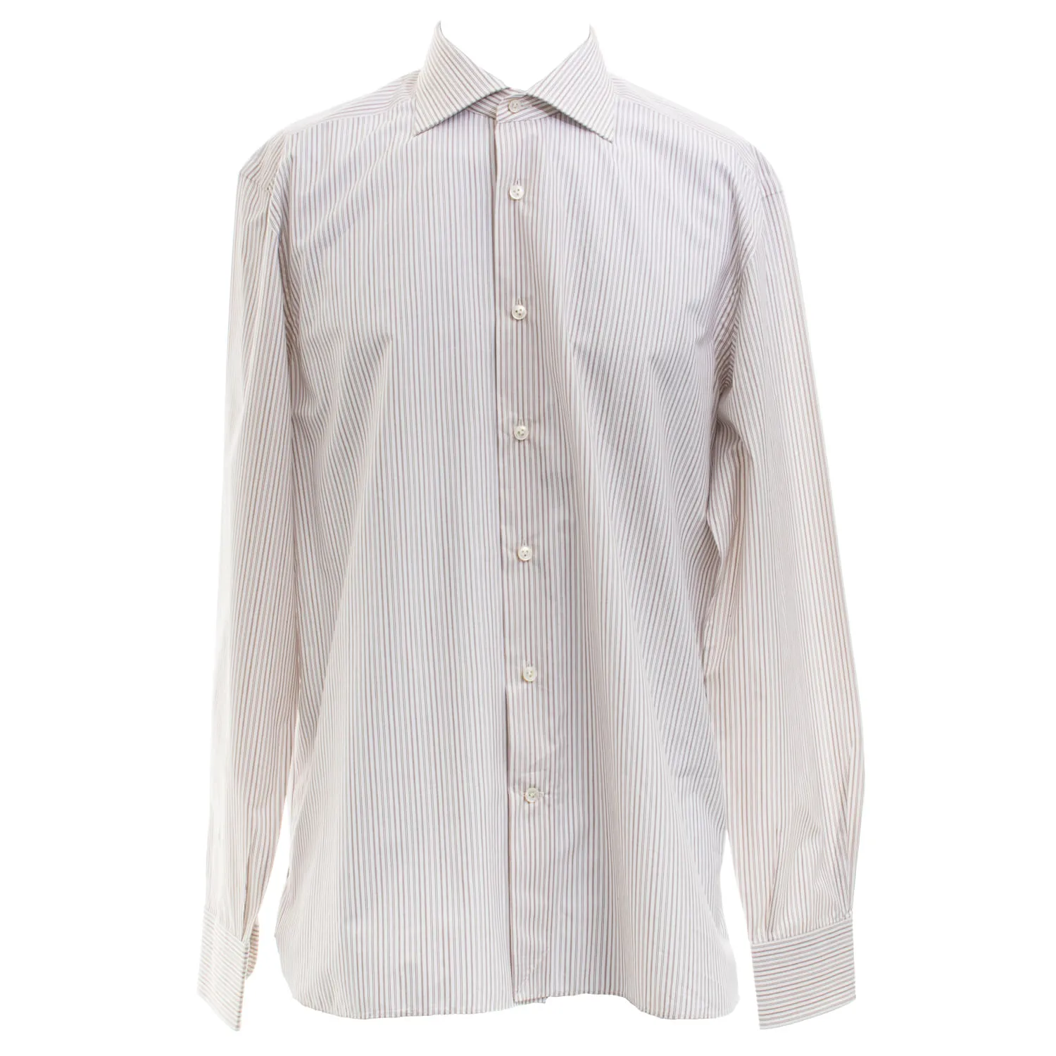 Camisa Ermenegildo Zegna Algodão Listras Branca e Marrom