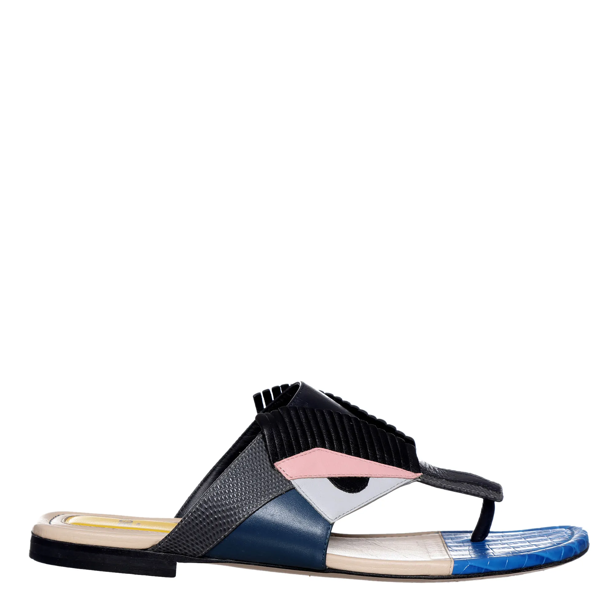 Sandália Fendi Logo Cristais Cetim e Veludo Preto