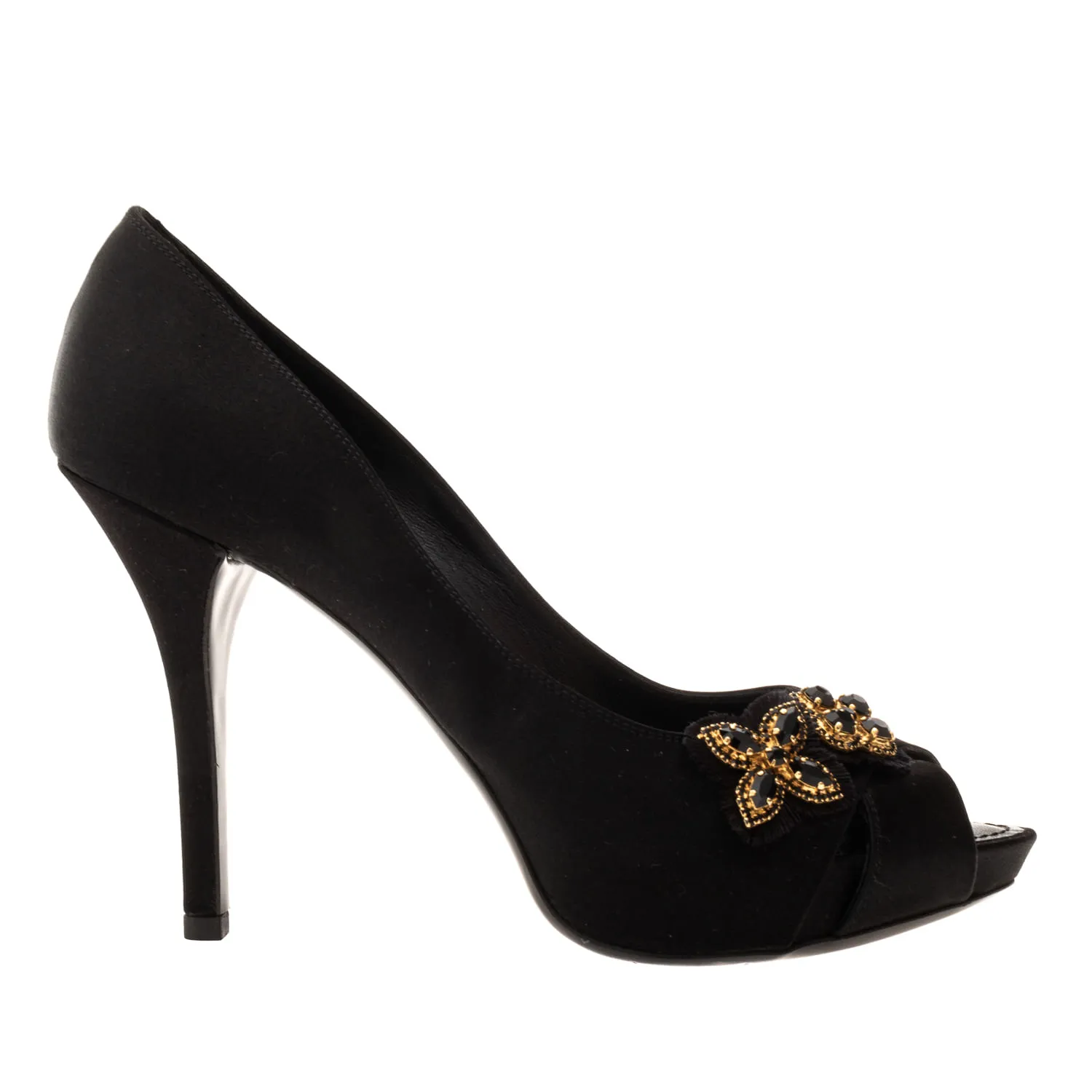 Peep Toe Louis Vuitton Aplicações Cetim Preto