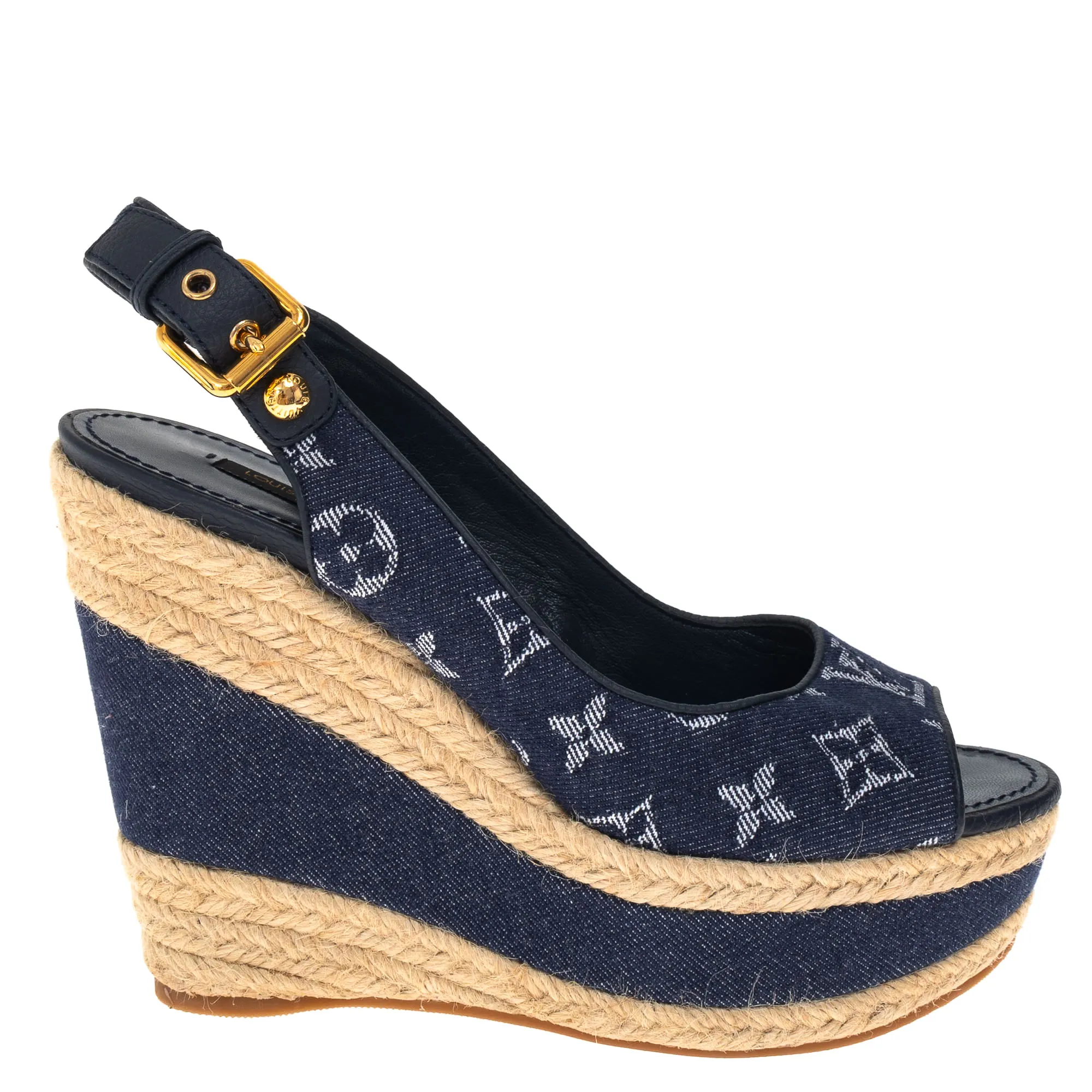 Sandália Louis Vuitton Anabela Monograma Jeans