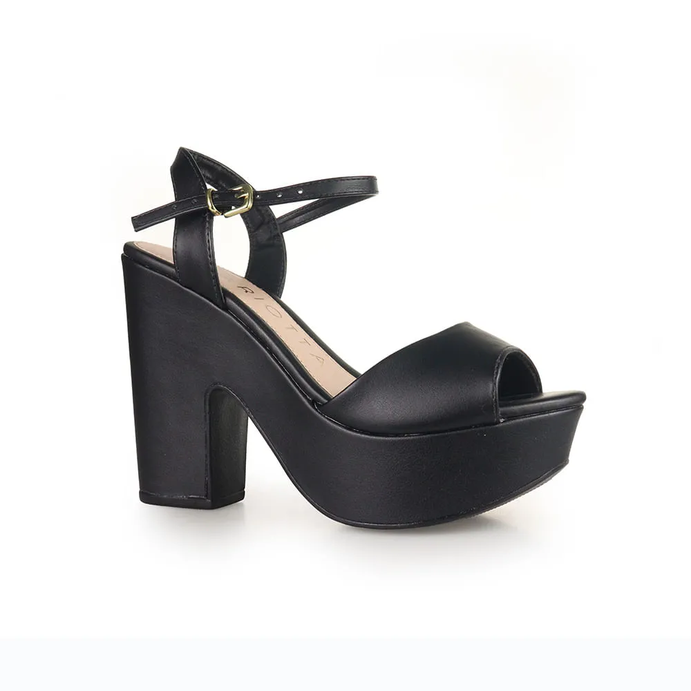 Sandália Feminina Casual Mariotta Salto Fino Preto e Prata- 2073601