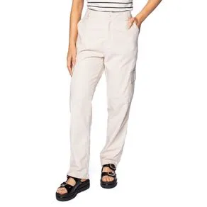 Calça Feminina Mochine Reta Linho com Bolso Cargo Bege