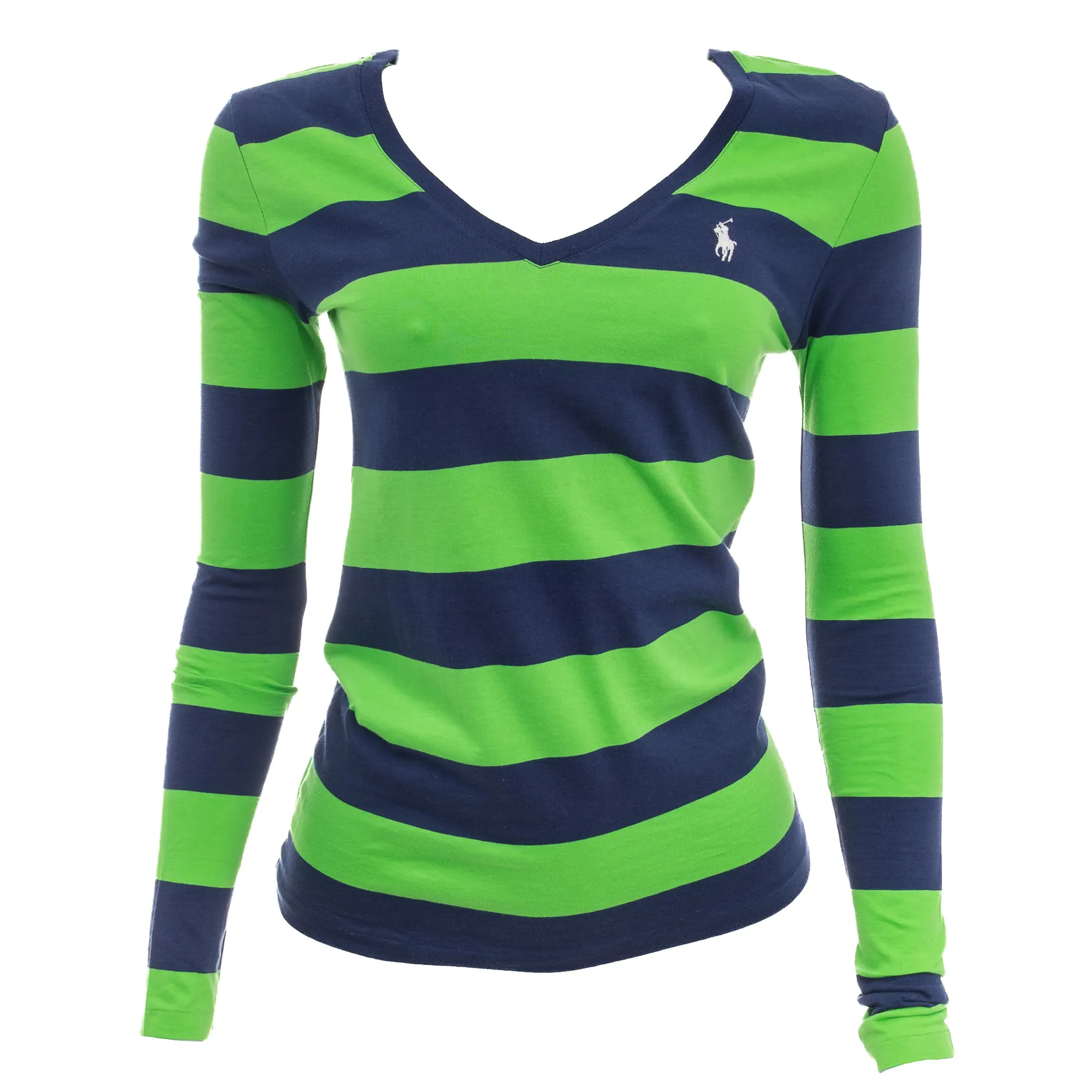 Blusa Ralph Lauren Manga Longa Listras Verde e Marinho