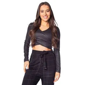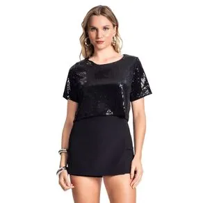 Blusa Cropped Feminina Rovitex Endless Em Paetê Preto