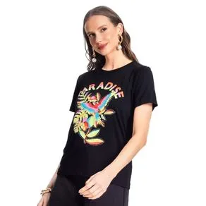 Blusa Feminina Rovitex Estampa Paradise Preto