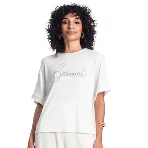 Blusa Feminina Rovitex Manga Ampla Botanical Off White