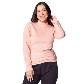Blusa Feminina Rovitex Manga Longa Gola Alta Rosa Claro
