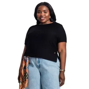 Blusa Feminina Rovitex Plus Size Abertura Lateral Preto
