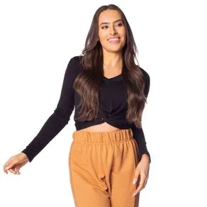 Blusa Feminina Rovitex Manga Longa Transpassada Preto