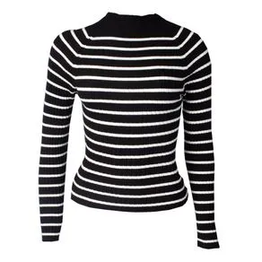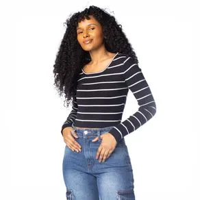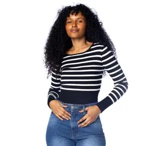 Blusa Feminina Blue Rose Malha Listras Preto/Branco