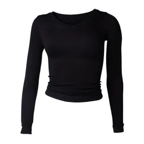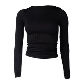Blusa Feminina Blue Rose Malha Canelada Gola Careca Preto