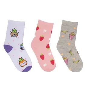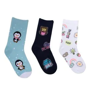 Kit c/ 3 Meias Infantil Selene Cano Médio Estampada Diversos