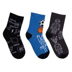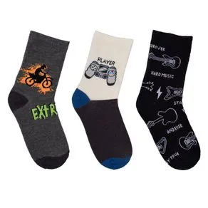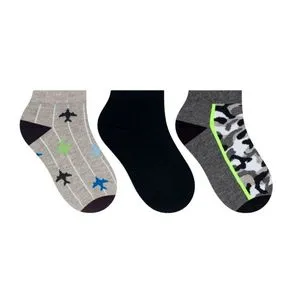 Kit c/ 3 Meias Infantil Selene Menino Cinza/preto