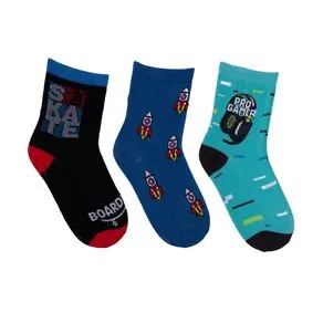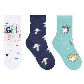 Kit 3 Pares de Meias Infantis Selene Estampada Verde/marinho