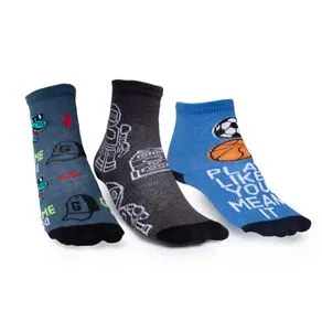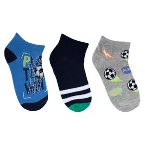 Kit com 3 Pares de Meias Infantis Selene Cano Curto Menino Azul/cinza
