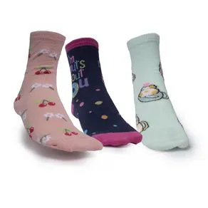 Kit com 3 Pares de Meias Infantis Selene Cano Curto Preto/cinza