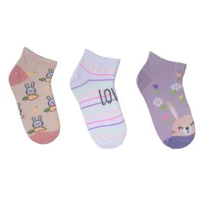 Kit com 3 Pares de Meias Infantis Selene Cano Curto Coelho Lilás/branco