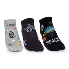 Kit com 3 Pares de Meias Infantis Selene Cano Curto Menino Preto/cinza