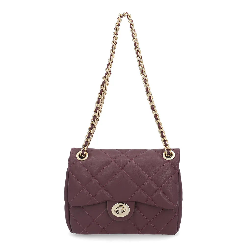 Bolsa Baguete Couro Comfy Roxo Corrente
