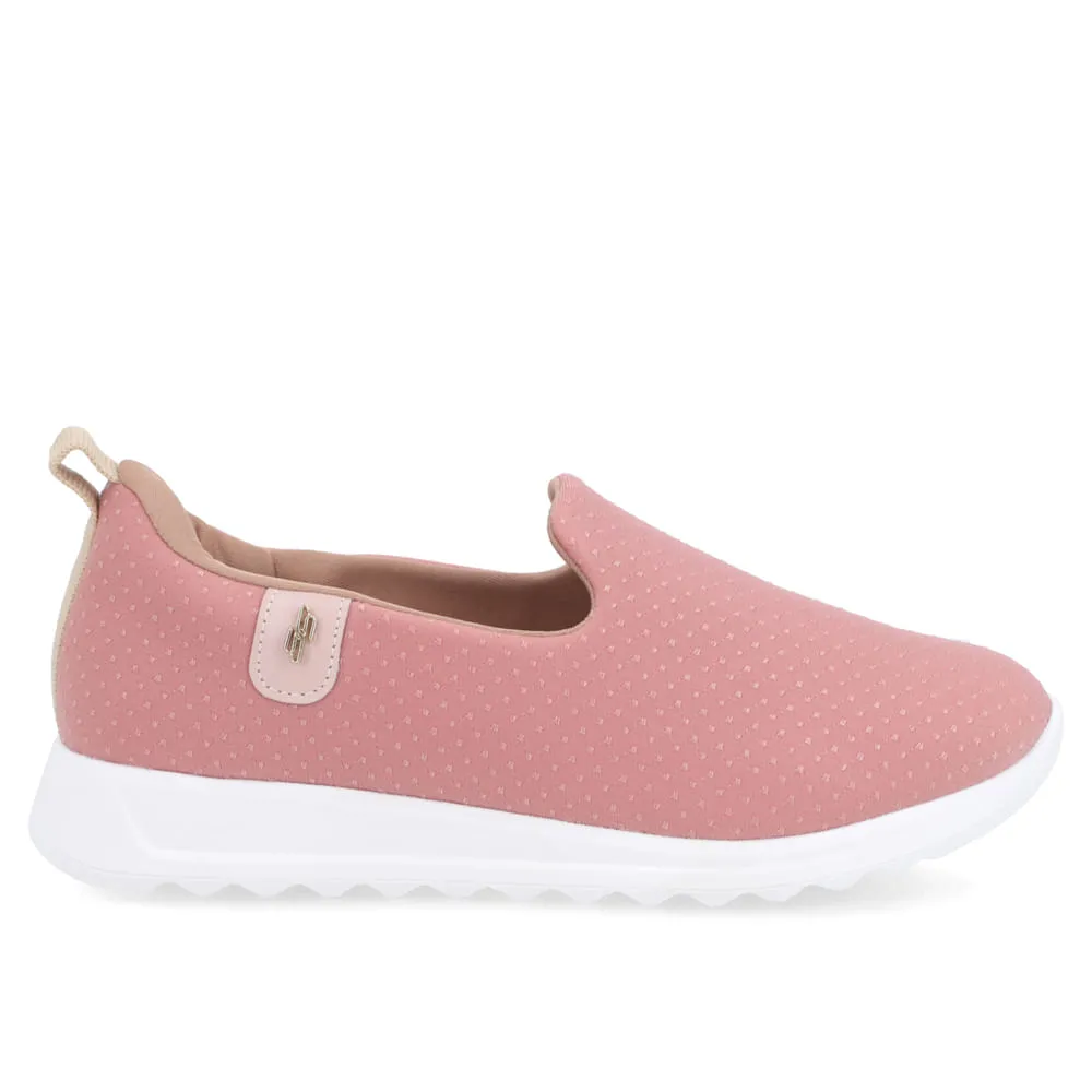 Tênis Slip On Rosa Suave Elastano Textura Poa