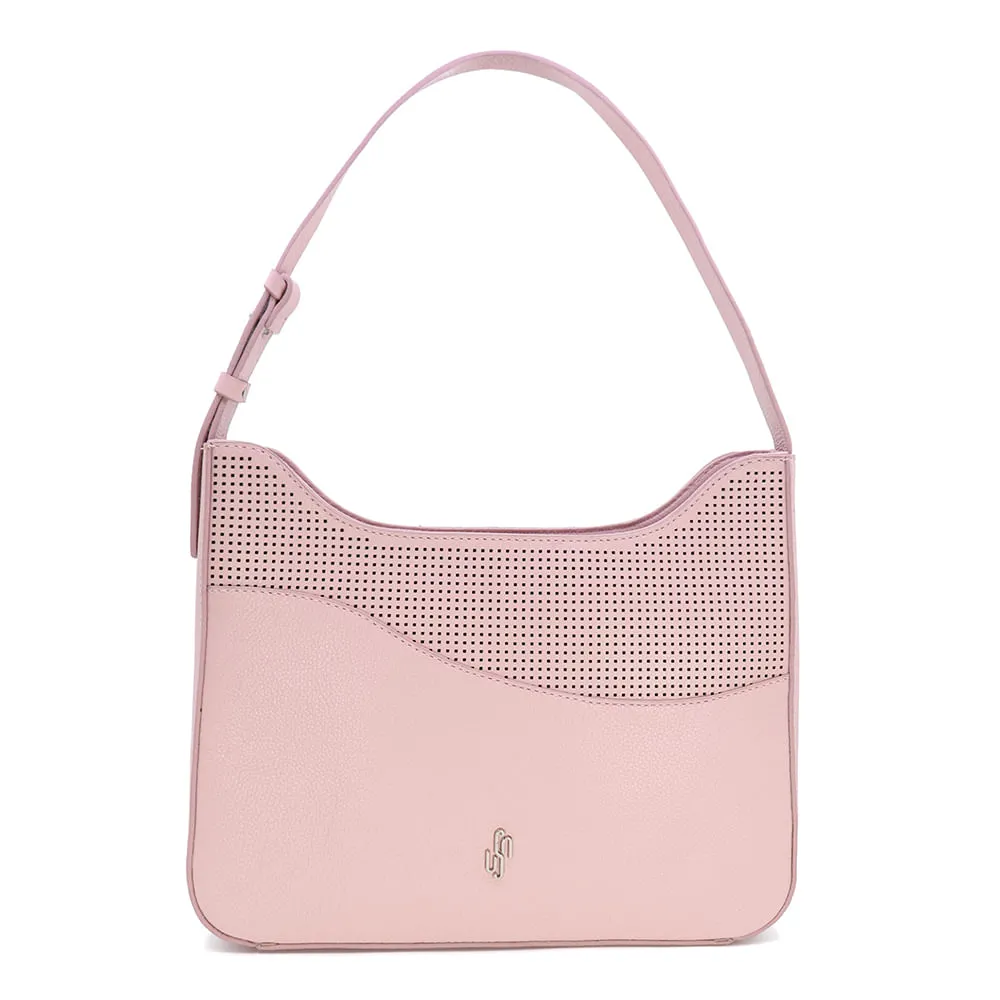 Bolsa Hobo Couro Rosa Detalhe Laser