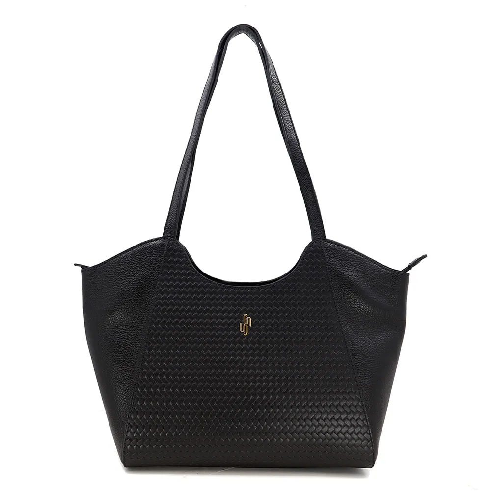 Bolsa Shopper Couro Preto Maxi Tressê