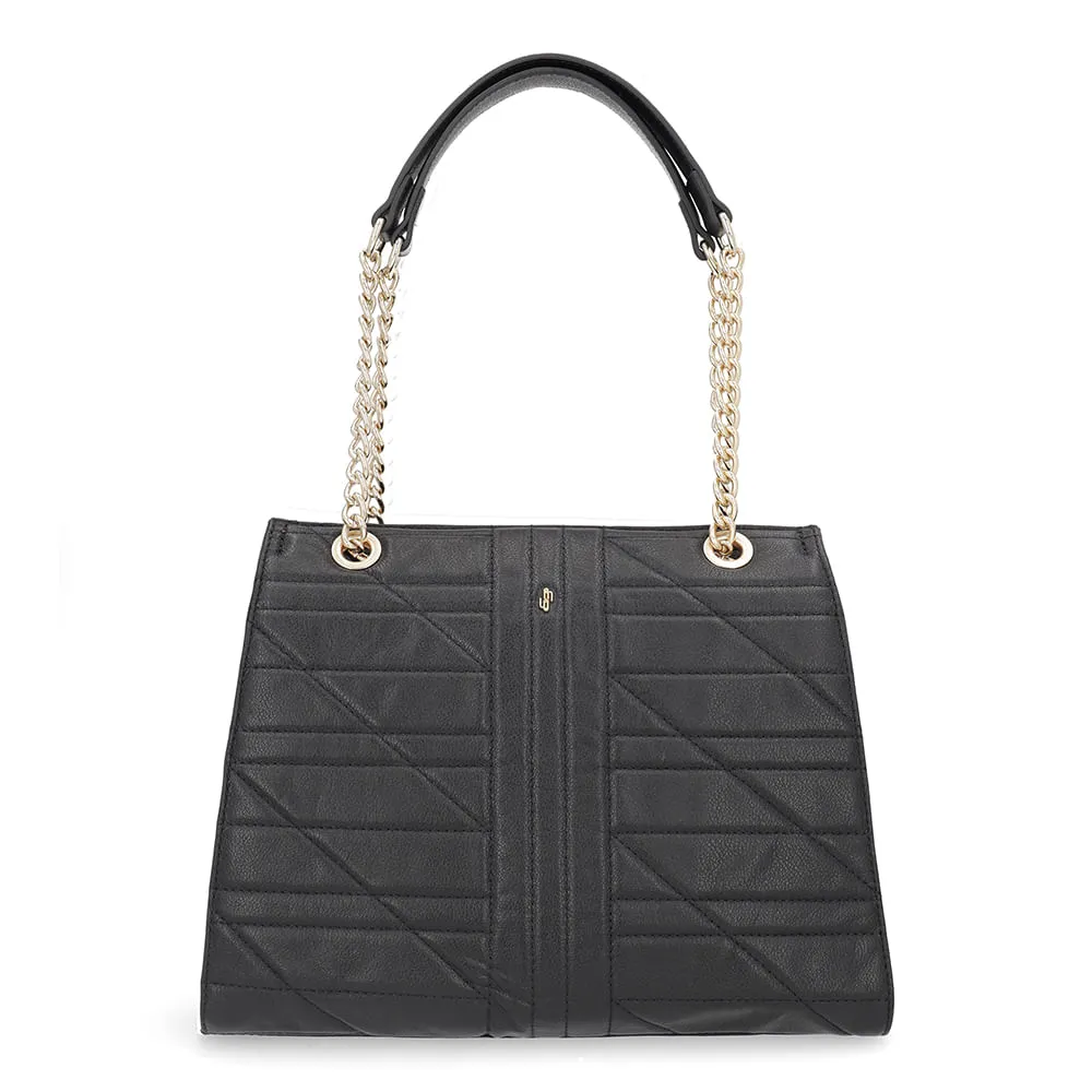 Bolsa Shopper Couro Comfy Preto Costura Enfeite