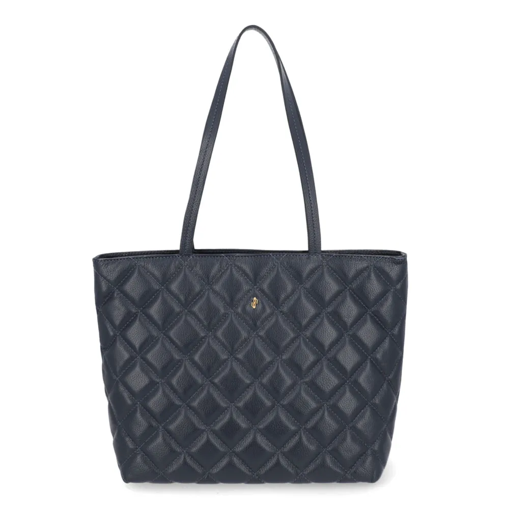 Bolsa Shopper Couro Azul Matelassê