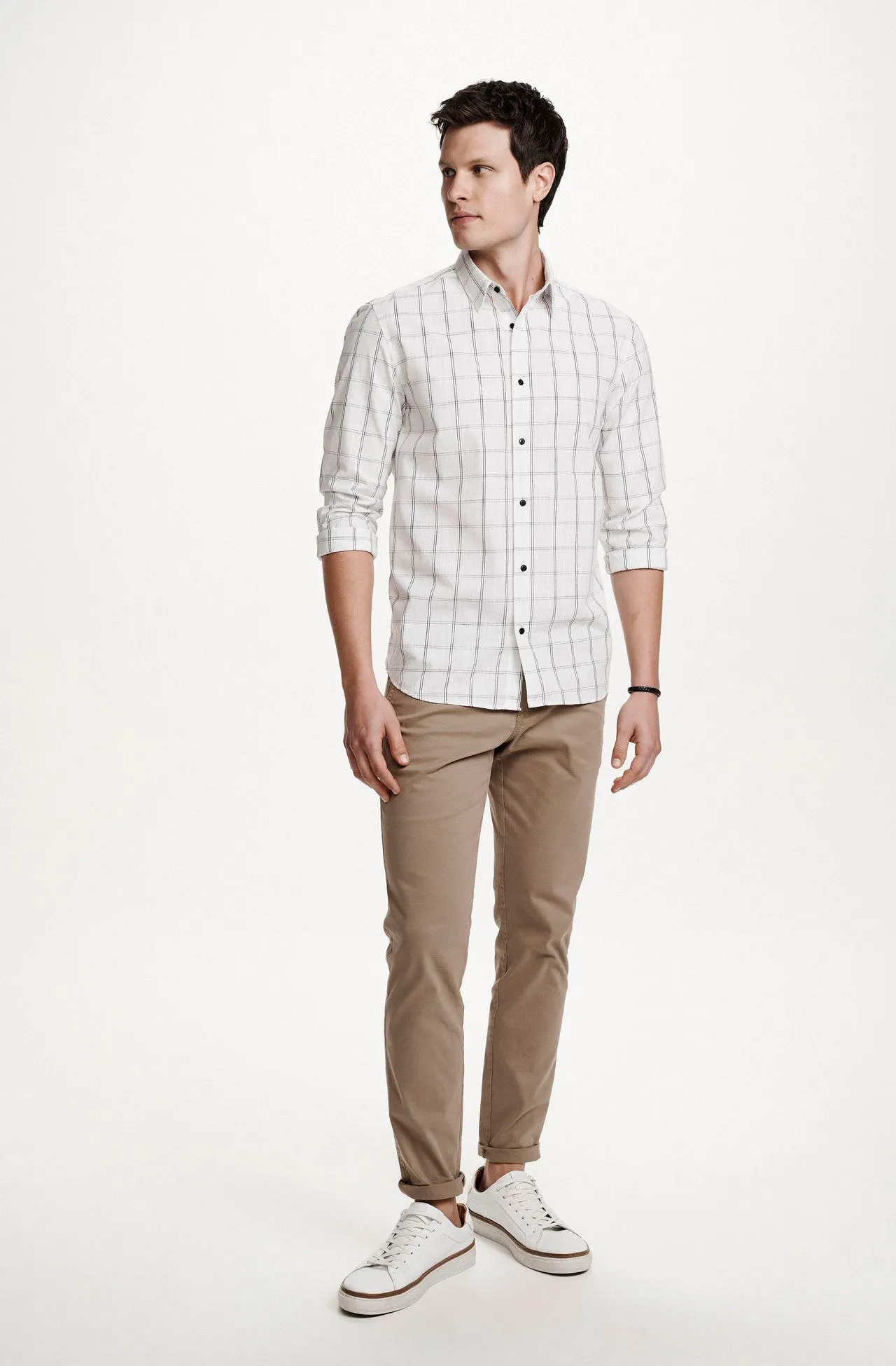 Camisa Casual Xadrez Fio Tinto Preto Em Fundo Branco