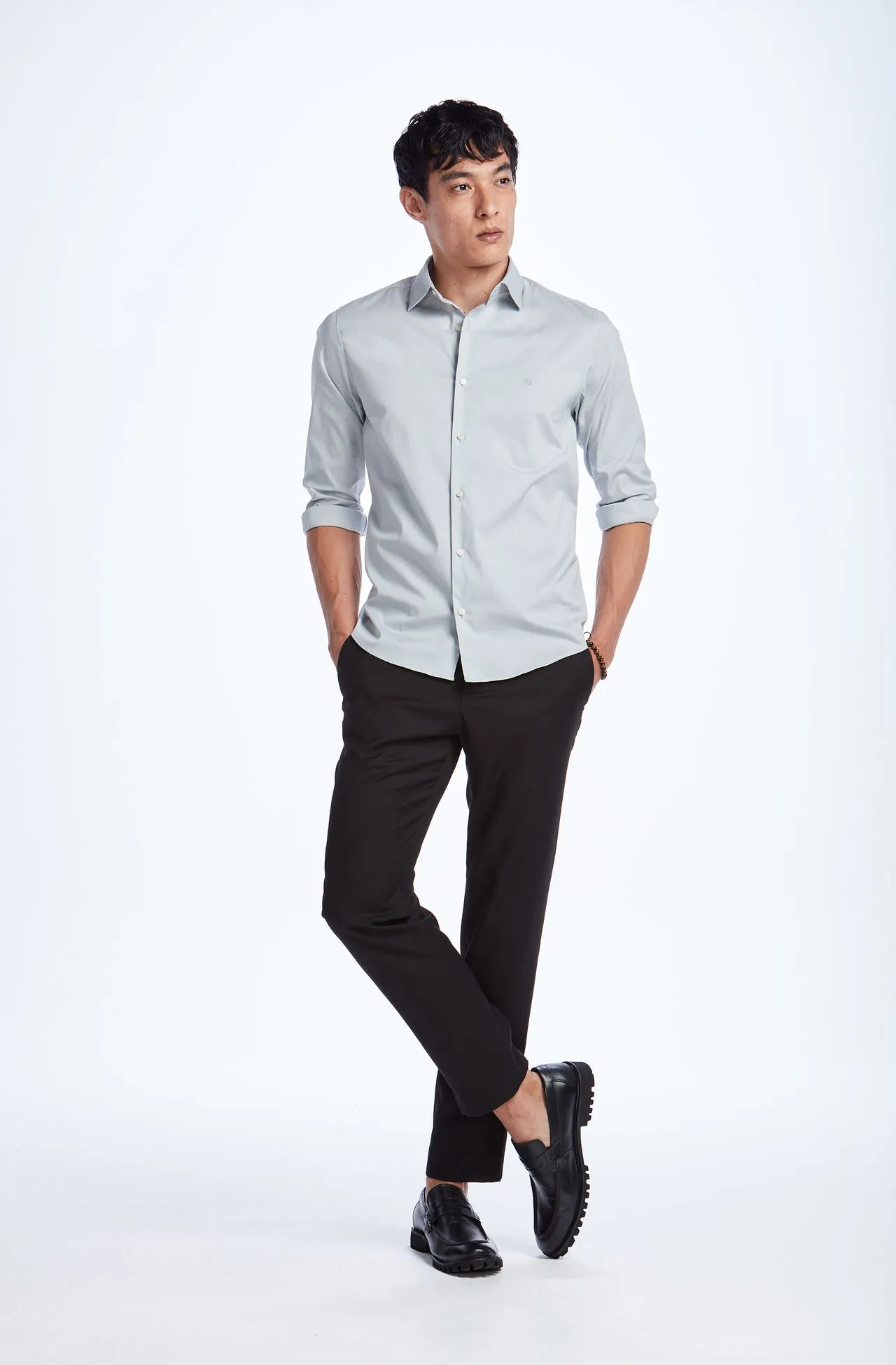 Camisa Work Cinza Claro Em Algodão Com Stretch