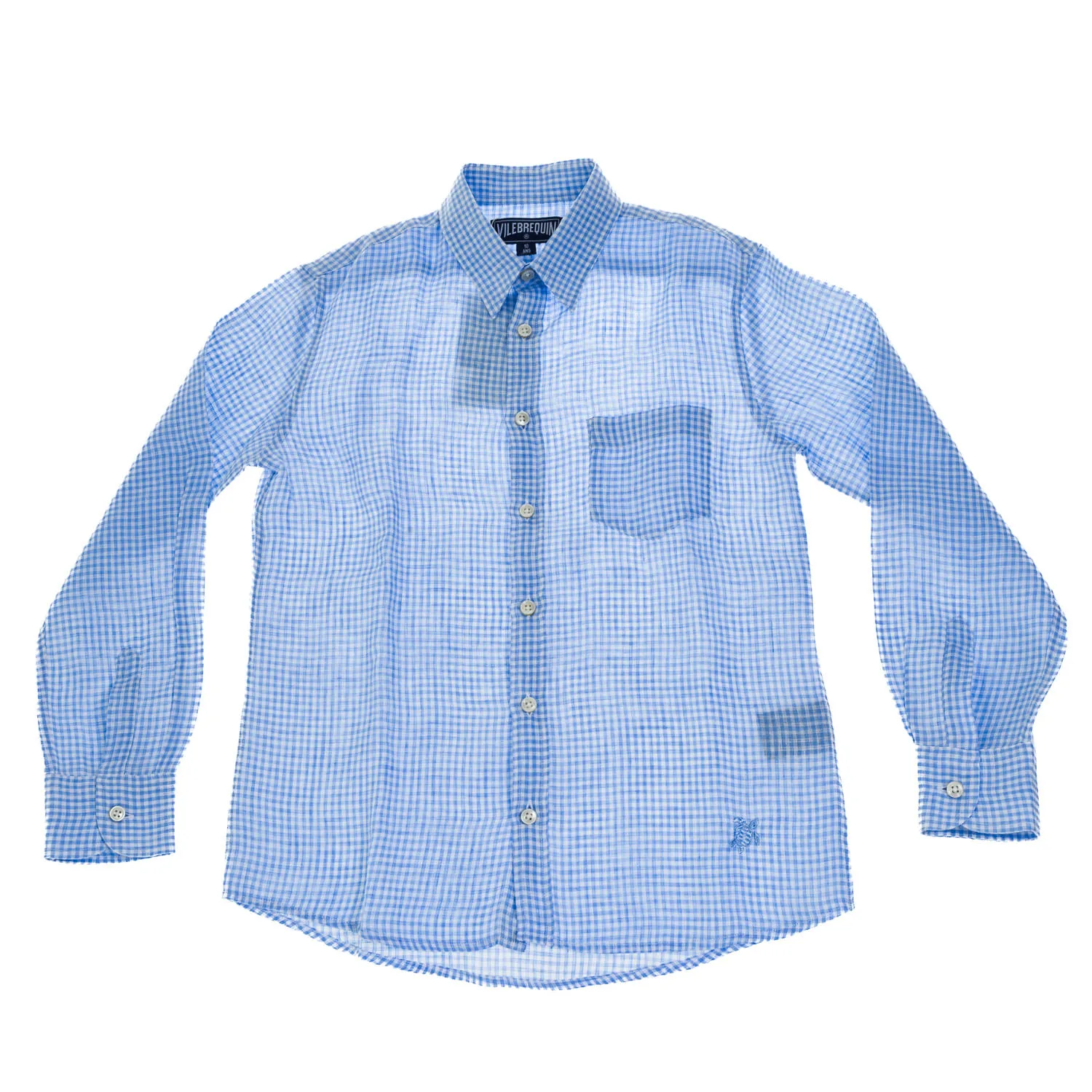 Camisa Vilebrequin Infantil Xadrez Branco e Azul