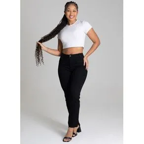 A calça possui corte inspirado na alfaiataria com modelagem slim, levemente ajustada ao corpo, e cintura média. Contém elastano na composição do tecido, deixando ainda mais confortável no vestir.