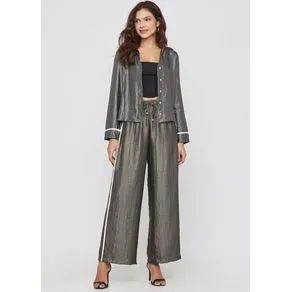 A calça conta com modelagem pantalona, cós com elástico na parte posterior, bolsos funcionais e seu charme está na estampa botânica que é tendência na estação.