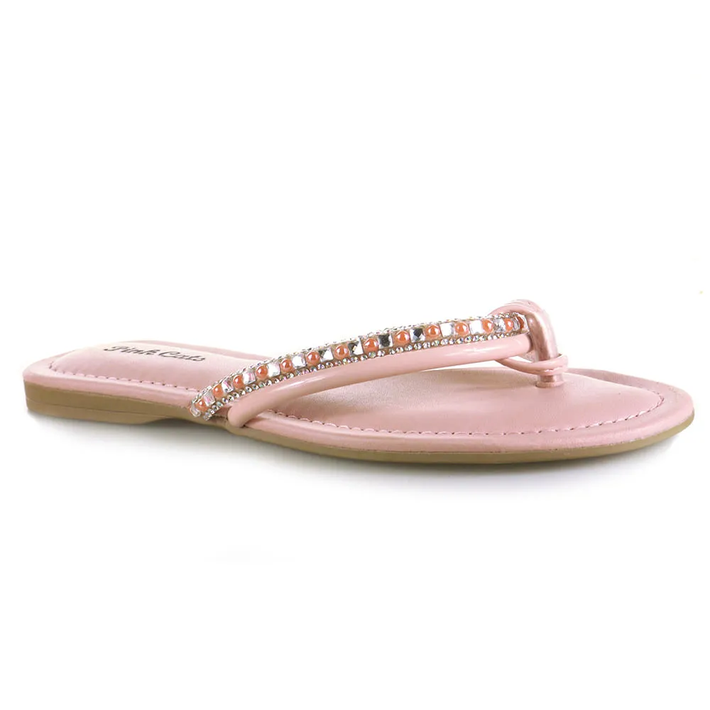 Diferencial: cabedal com tiras finas, sendo uma delas com aplicação de brilhos