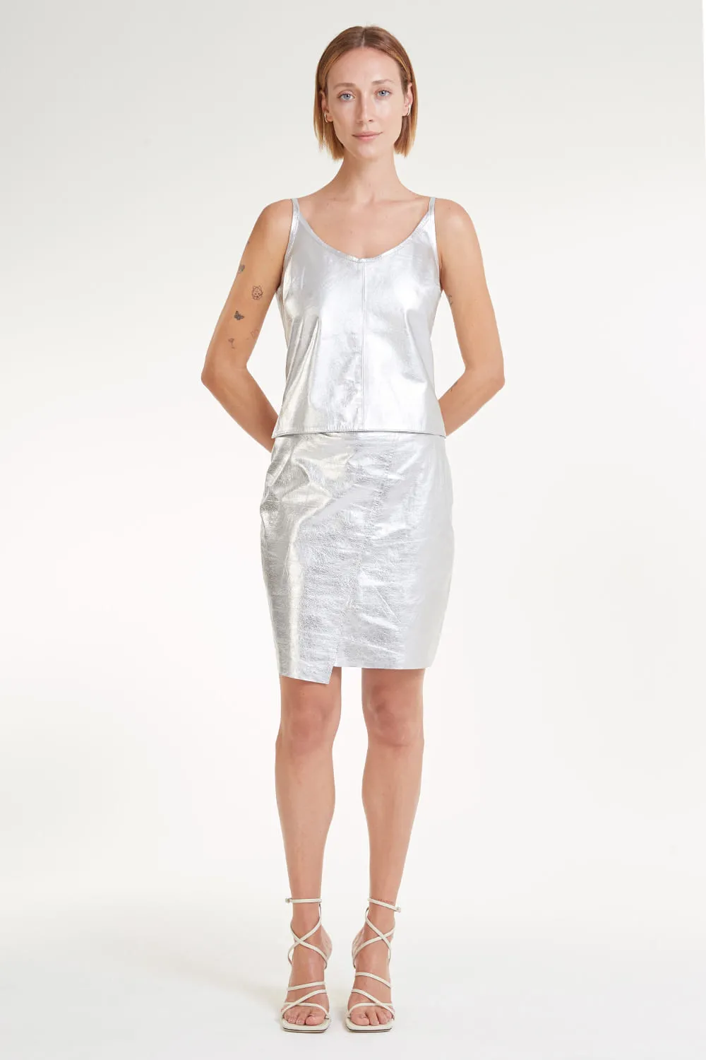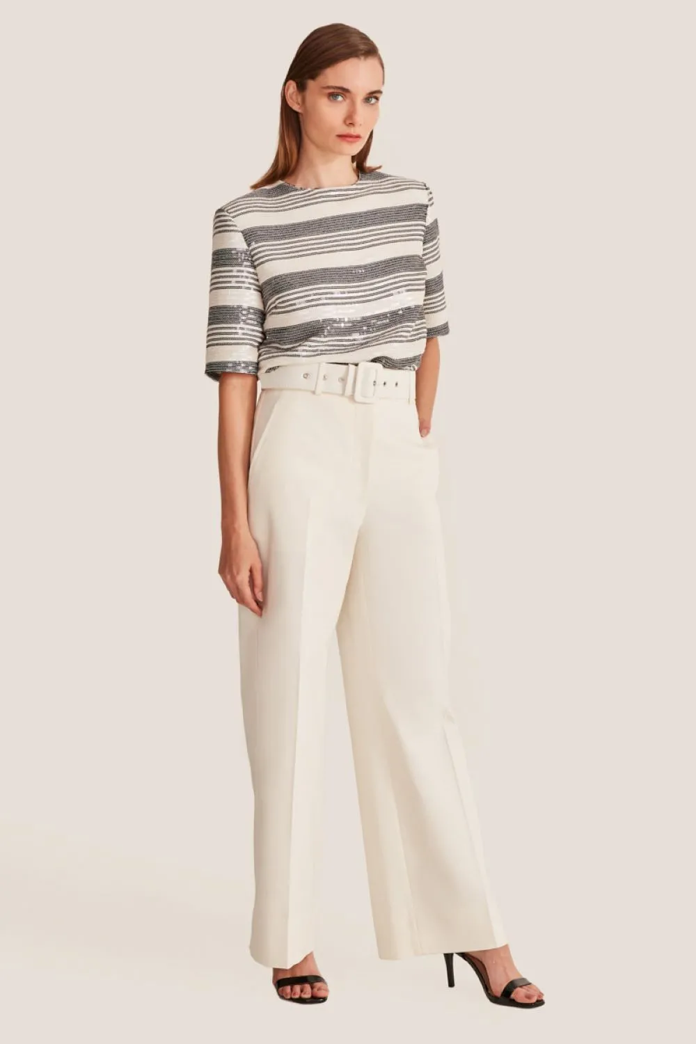 Vista toda a beleza do Shorts pence white denim româ da Cori! Todo o design e a elegância de quem está há mais de 65 anos vestindo a mulher brasileira.