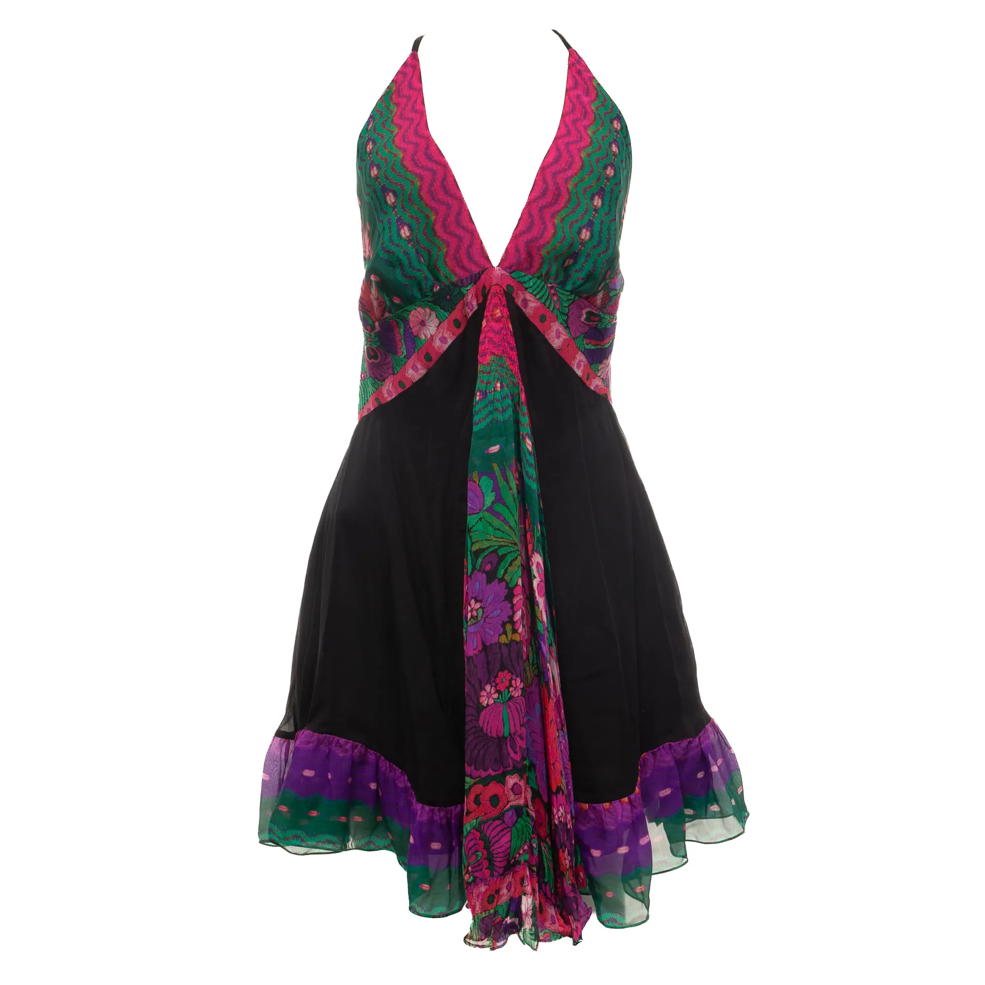 Vestido Roberto Cavalli Tule Bordado Preto e Amarelo